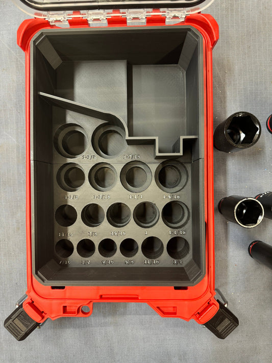 Imperial / SAE Milwaukee Packout Full size Deep Impact Socket storage bin with M12 1/2' Wrench storage 49-66-7093 / 2555P-20