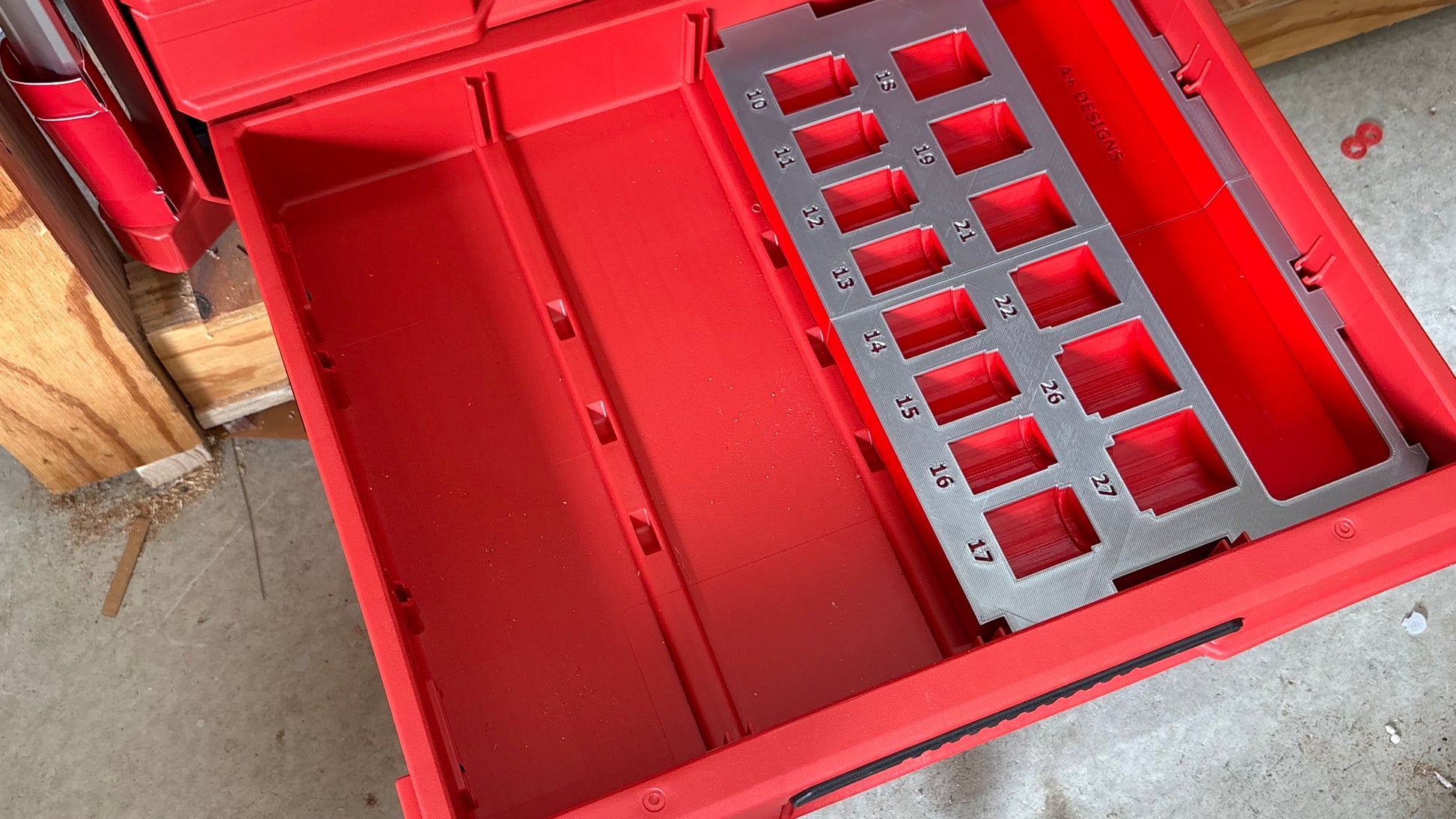 Organize your Milwaukee SHOCKWAVE metric impact socket set with precision using this custom 3D-printed drawer insert. Engineered for the 4-drawer, 3-multi-drawer, and 2-drawer Packout toolboxes, this insert keeps your Milwaukee metric set 49-66-7013 socket set perfectly arranged and instantly accessible. Manufactured from high-grade ABS plastic for exceptional durability and long-term reliability. The two-piece design fits seamlessly into your existing Packout system, maximizing storage efficiency while protecting your tools. Transform your tool organization with a solution built specifically for serious professionals.